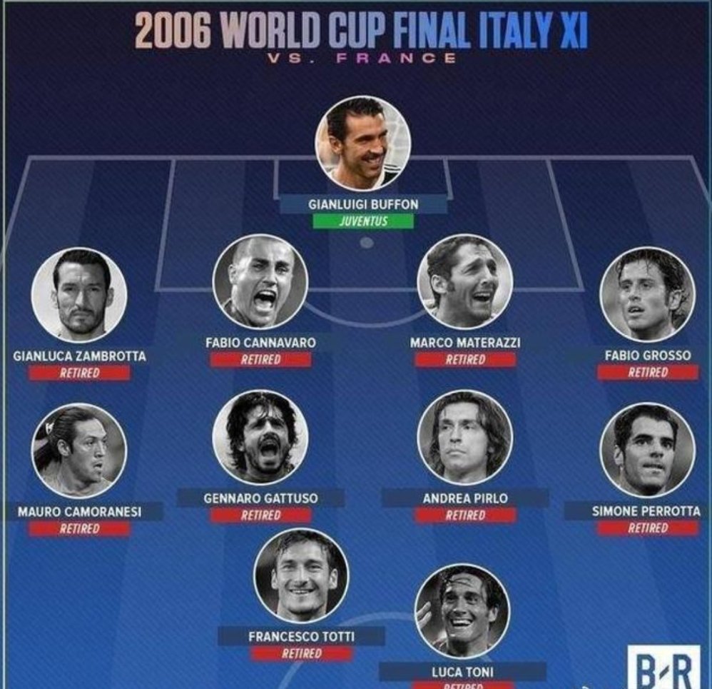 至此 2006年世界盃意大利奪冠球員已全部退役