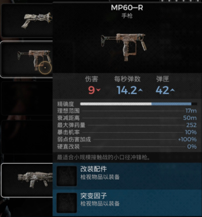 ‘遊戲開局的照明筒下有着十三區保險箱的密碼,輸入密碼後獲得倉庫鑰匙,打開倉庫後可以在大前期獲取副武器位的衝鋒槍MP60,衝鋒槍的基礎傷害不高,但可以通過初期換取的火焰改裝配合武器的高載彈量和高射速打出不俗的傷害,來進行前期的一個過渡。