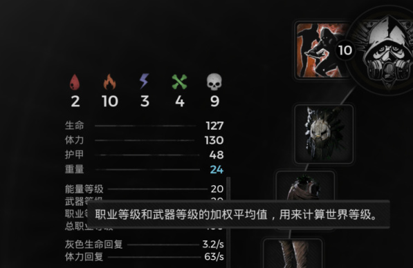 能量等級又是職業等級和武器等級的加權平均值。