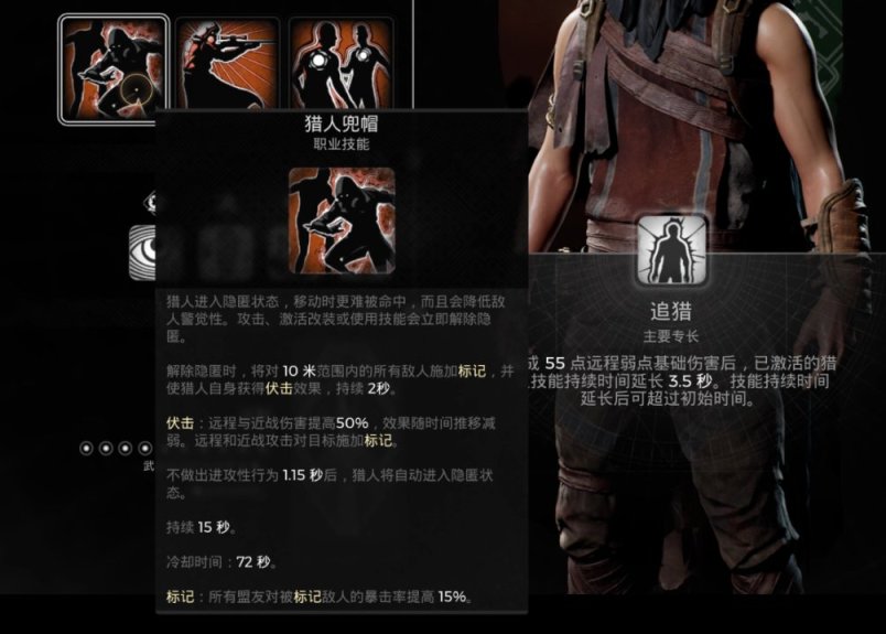 比較有意思的是,獵人三技能的伏擊效果提供的50%傷害加成,是與其他傷害加成乘算的,而不做出進攻性行爲1.15秒是包括弓箭蓄力瞄準這個過程的,每發蓄力弓箭都可以喫到這個傷害的加成,而每次命中弱點則可以通過獵人的主要專長延長三技能的持續時間,而且這個階段與日暮的改裝一樣是有隱身效果的,在實際使用時比日暮要靈活一些。