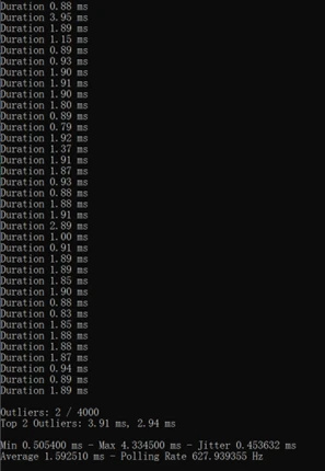 黑武士3宣称2.4G无线模式下的回报率做到了和有线连接一样的回报率,在有线模式和2.4G接收器模式下,可以实现500Hz的高回报率。我这里利用第三方回报率测试软件“XInput Polling Rate Checker”进行测试,接收器模式下实测他不仅做到了500Hz的回报率,甚至冲到了600Hz,这就相当于无线模式下能享受到有线水准的极致反馈。