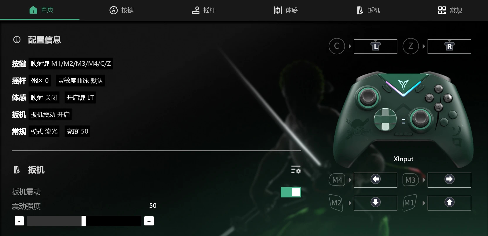 强大且自由的自定义平台,在这里你可以对手柄进行个性化定制,调教成适合自己的舒服状态(修改按键映射,按键宏定义,调节摇杆死区,调节扳机触发行程,调节灵敏度,调节震动强度,修改RGB灯效表现)。