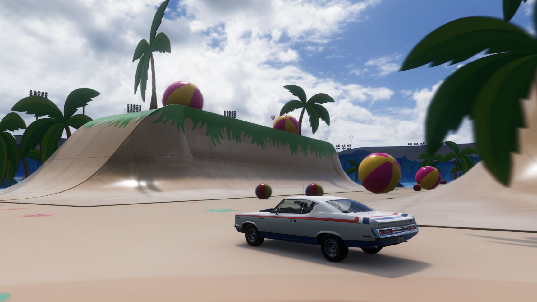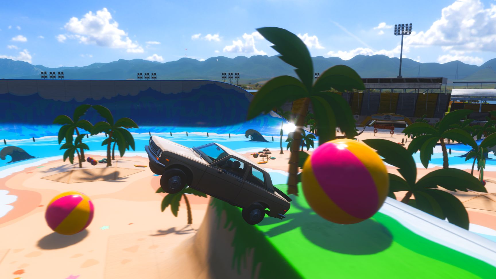 体育场现有人造沙滩(FH特色),内有大量排球,驱车破坏就算完成。