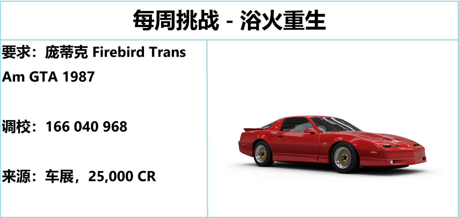 1. 拥有并驾驶 1987 款 庞蒂克 Firebird Trans Am GTA
