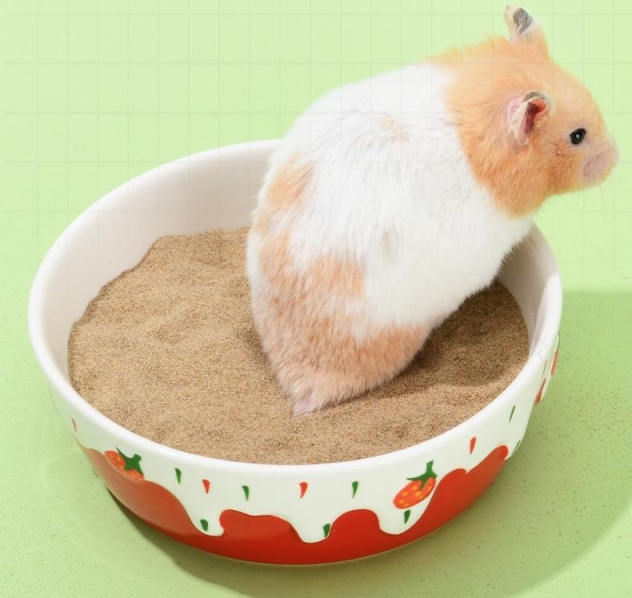 浴沙倒在小盆中,大约八分满即可,还有,仓鼠自己会去浴沙洗澡。