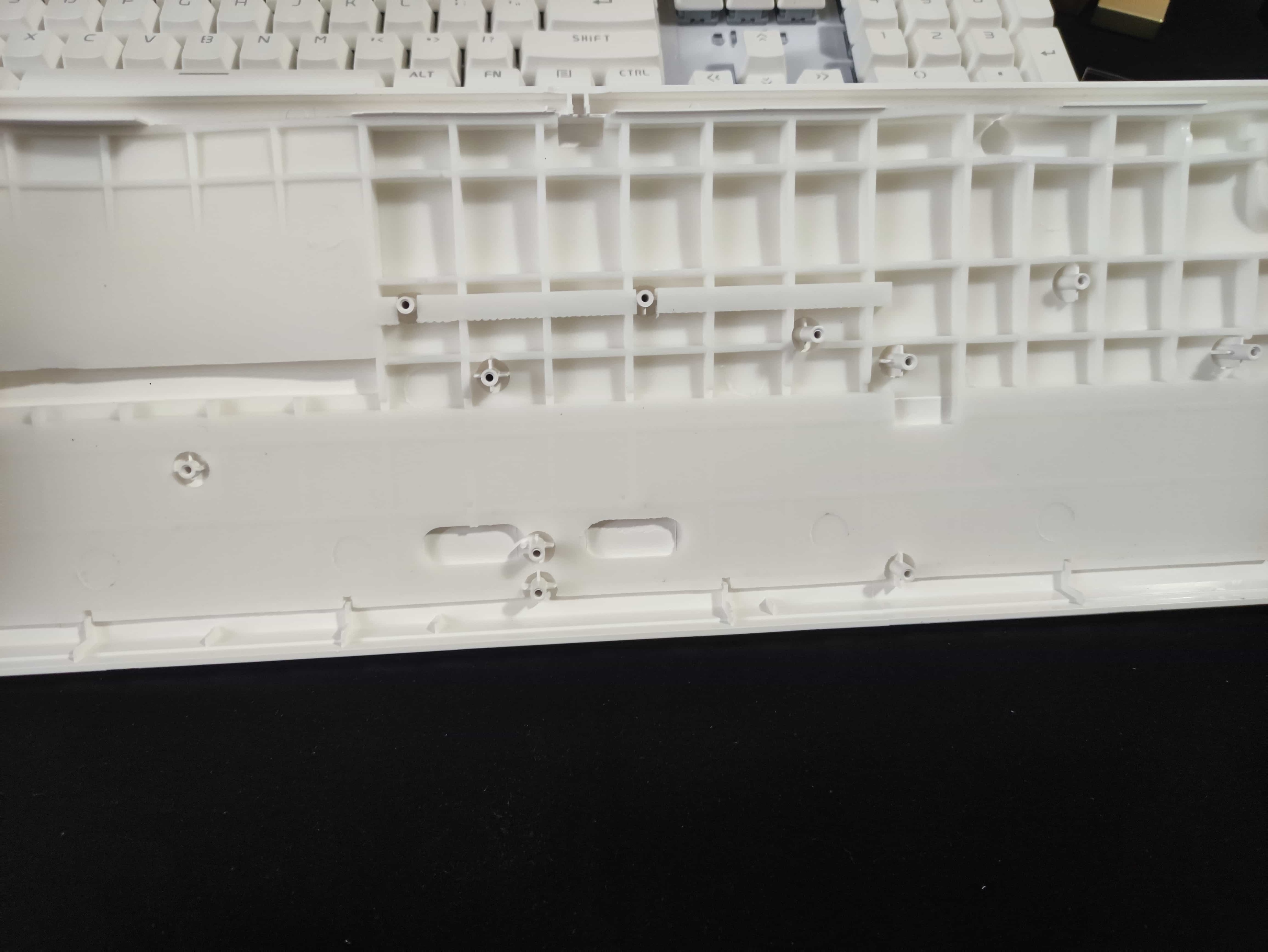 虽然说在这个价位里面既要追求堆料又要追求外观的细致程度稍微有点过分,但是就个人的观感来说这个键盘上侧因为做了一个倾斜角设计,导致上侧面积十分的大,却并没有什么填充在上方,就显得有些不是很自然,并不会影响使用。
