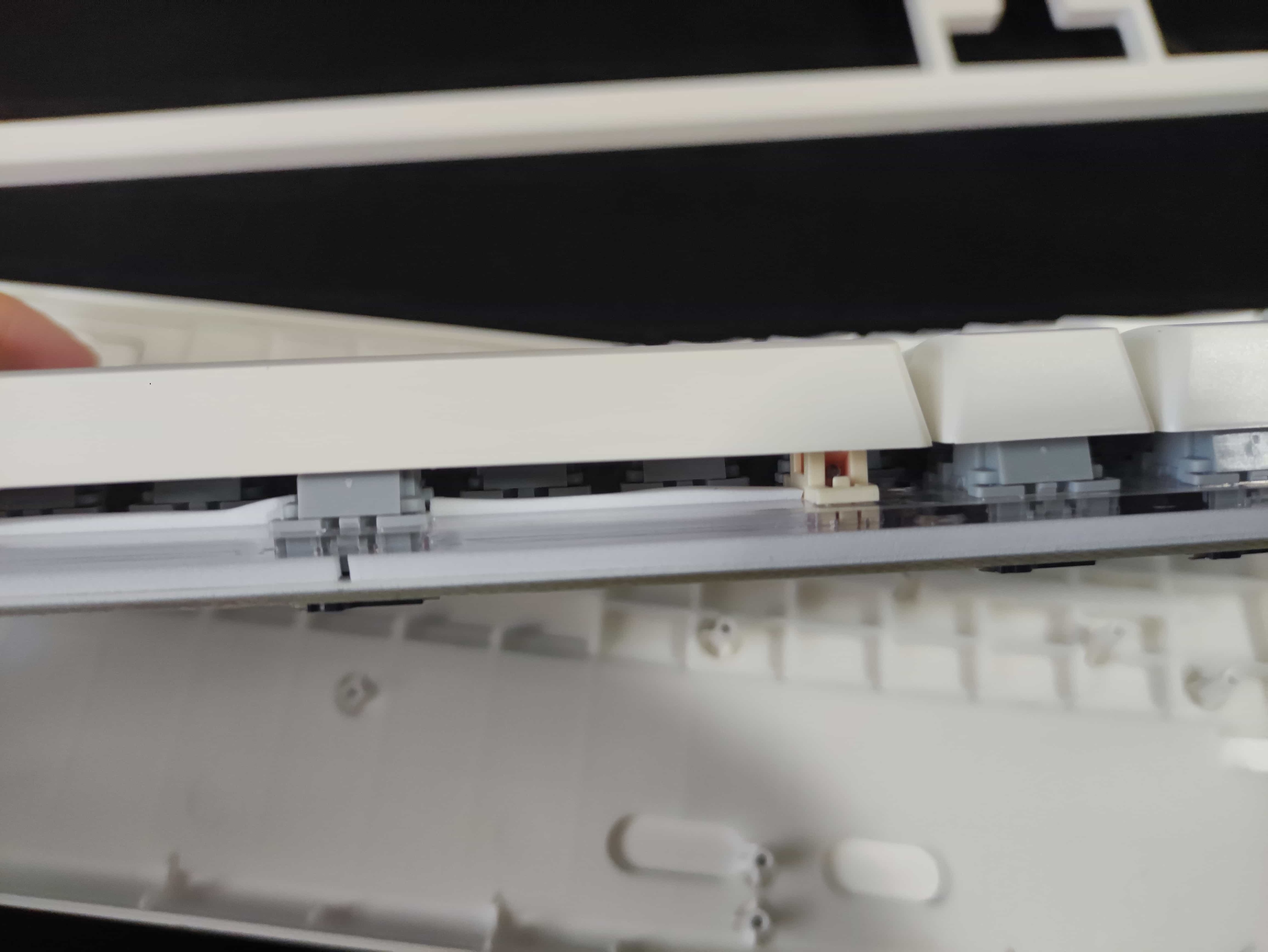 整体大键的表现其实相当不错,大部分按压手感都十分的优秀,但是这个空格键很软很肉,手感并不是很好。