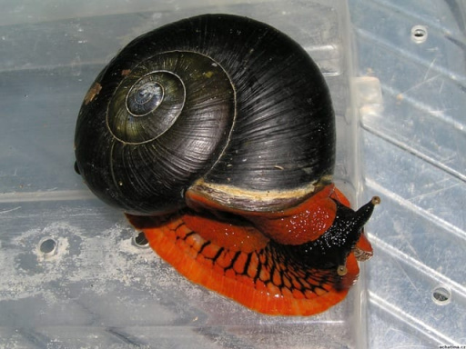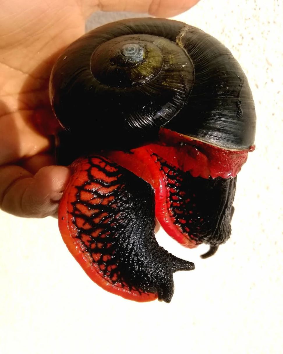 因爲有着十分顯眼的黑色外殼和鮮紅的“腳”,所以人們很難把它們和其他蝸牛物種混淆。