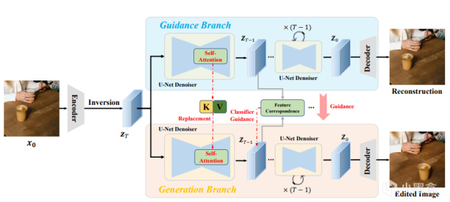 引導分支則起來到類似於判別器(Discriminator)的作用,生成分支結構相當於GAN中的生成器(Generator)。首先引導分支會對原圖像進行重建,在重建過程中將引導原圖信息,注入到生成分支,生層分支利用引導信息對原圖像進行編輯,同時保持主要內容與原圖一致。