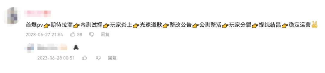 可是無數案例確實證明,和玩家交流是有必要的。在更多人選擇把真誠藏起來之後,結果就是猜疑鏈越來越長。甚至一些運營解法,都演化成了簡單粗暴的兩種:要麼裝死,靜候風波度過;要麼滑跪,發補償換失憶。久而久之,真誠似乎就成了行業最大的一個痛點。