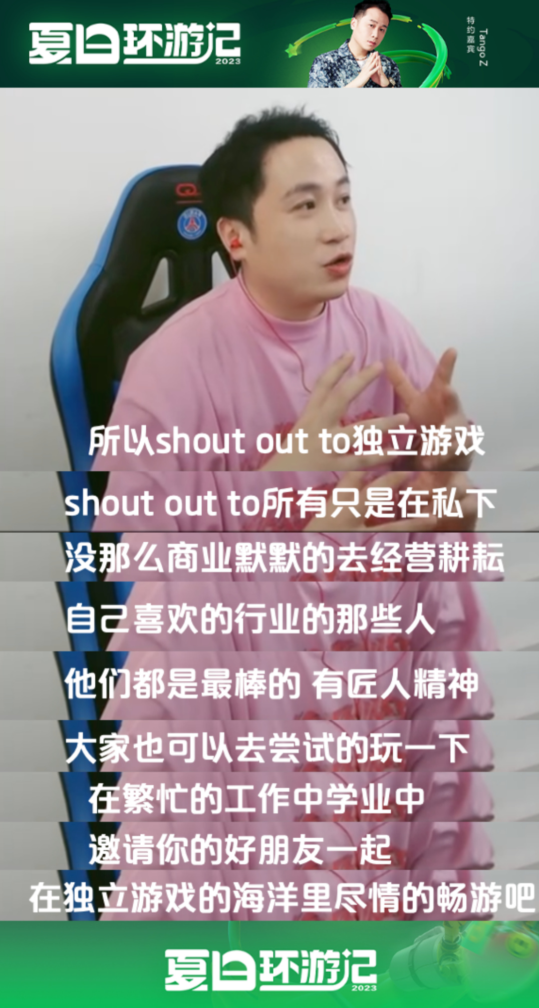 第一,針對難以破圈的問題,他們靠產品之外的外力做推手。這種外力很好理解,往往來自於名人或達人的影響力。比如抖音遊戲邀請了在年輕人中很受歡迎的說唱歌手TangoZ,讓他與7位遊戲創作者一起在直播中體驗了多款獨立遊戲,呼籲玩家一起關注和守護獨立遊戲的純粹與熱愛。