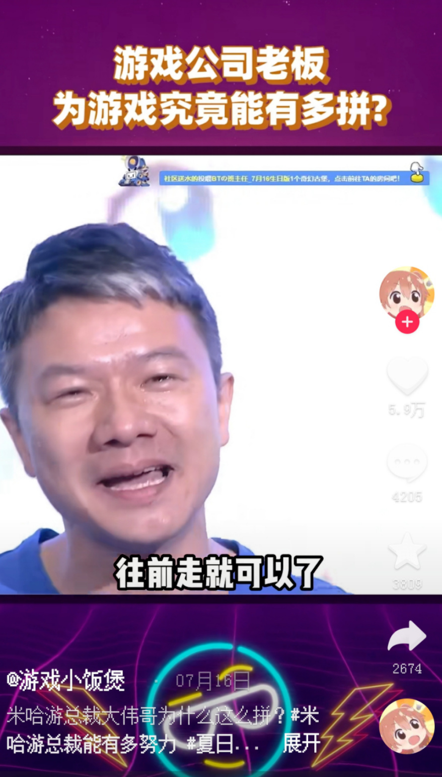 不管是從業者還是玩家,在所有人議論的背後,我看到最多的一個詞就是「真誠」——肉眼可見的真情流露,再加上高強度營業,很難不讓人認可大偉哥的熱愛。在那段時間的抖音上,#米哈遊總裁能有多努力 甚至成了一個挺火的熱點話題。