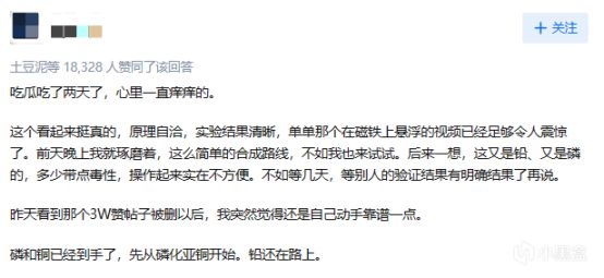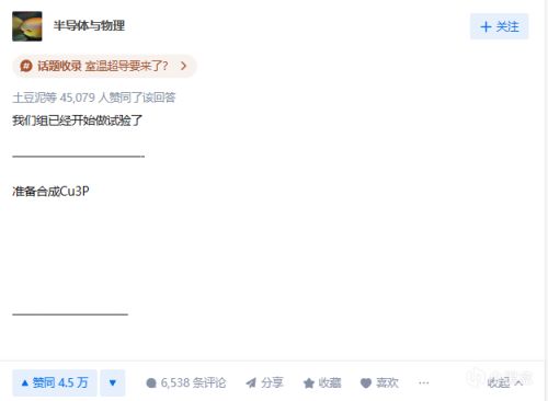 有人說是知乎又在抽風了,畢竟知乎上總有萬贊回答被智能小管家制裁的先例;又有人說博主是學生,揹着導師偷偷做實驗還發布在網上,被導師發現狠狠教育了一頓,刪帖走人了;還見過最離譜的猜測說是製備成功了,但已經被某某強力組織控制當成國家機密....