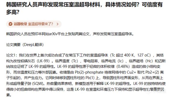 在它的首頁上,有這樣一個經典知乎式問題被刷到熱榜第一,“韓國研究人員聲稱發現常壓室溫超導材料,具體情況如何?可信度有多高?”