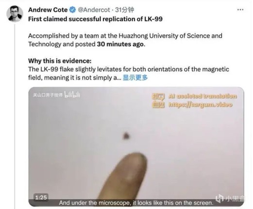 當然,事情到此爲止,才初步驗證了韓國人發的視頻不是造假,他們也確實製備出一個具有強抗磁性的新材料,而不是網友們定論的那樣弱磁性。儘管這也說明不了超導成功了,但卻能讓大傢伙的期待從“完蛋了”變成“還有戲”。