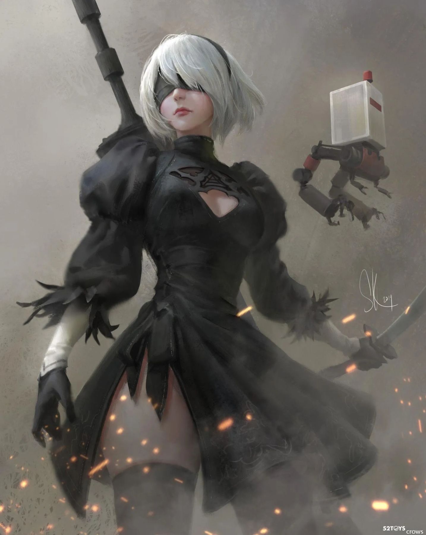 從頭到尾,A2都是一個爲別人而活的人,遇到2B他們之前,是爲了死去的戰友們而活,要復仇,要償還;2B死了之後,在此前的基礎上加入了爲了2B的心意而活