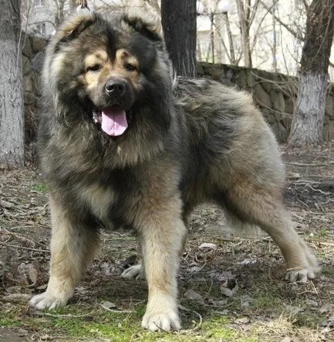 高加索犬,世界上体形最大的猛犬之一,它有着强壮的肌肉,发育良好且匀称的骨骼,比藏獒还大一个级别,现多用于看护家畜和保安。