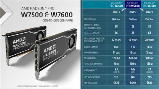 AMD正式发布了面向主流图形工作站的专业显卡Radeon Pro W7600、Radeon Pro W7500。