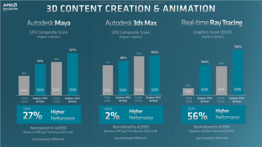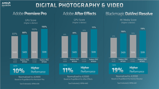 Radeon Pro W7600、W7500即日起开卖,价格分别为599美元(¥4300)、429美元(¥3100),OEM工作站和SI系统整机今年晚些时候上市。