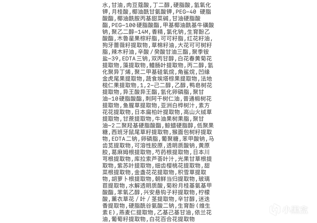 一定程度上可以降低皂基的刺激性。但从使用体验看,更偏向纯皂基的洁面体验。无色素,有香精的添加,低刺激的苯氧乙醇,苯甲酸钠构成了防腐体系。其他就是一些乳化剂,多元醇,以及没什么卵用的,几十种植物提取物的添加。