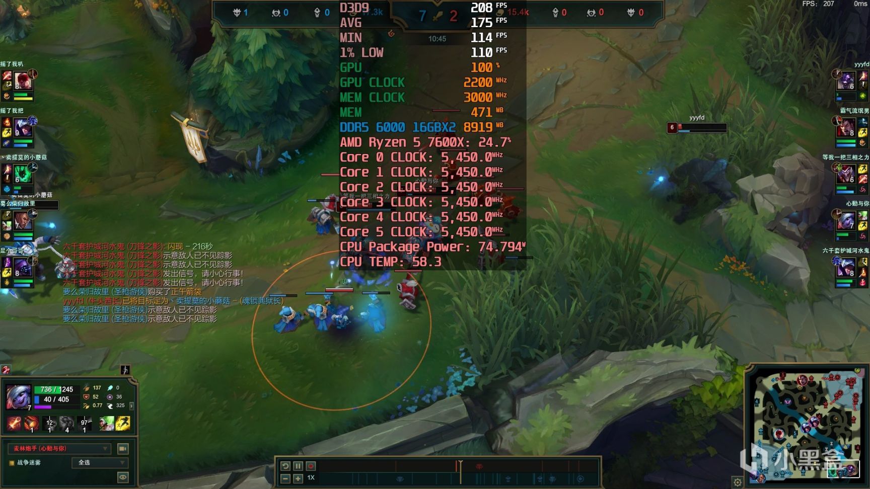 實跑下游戲,RDNA 2架構核顯運行頻率爲2200MHz,跑1080P《英雄聯盟》極高畫質能達到平均175fps,這類DX9老遊戲本身就更看中CPU性能,作爲過渡使用還是很不錯的。
