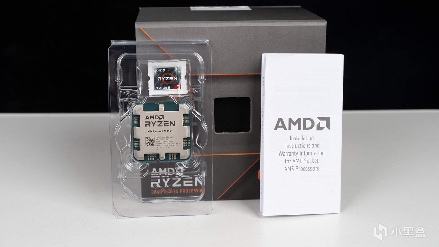 Ryzen 9 7900X盒裝的三大件也一樣,但它的包裝盒設計體積更大,顯得大氣一點
