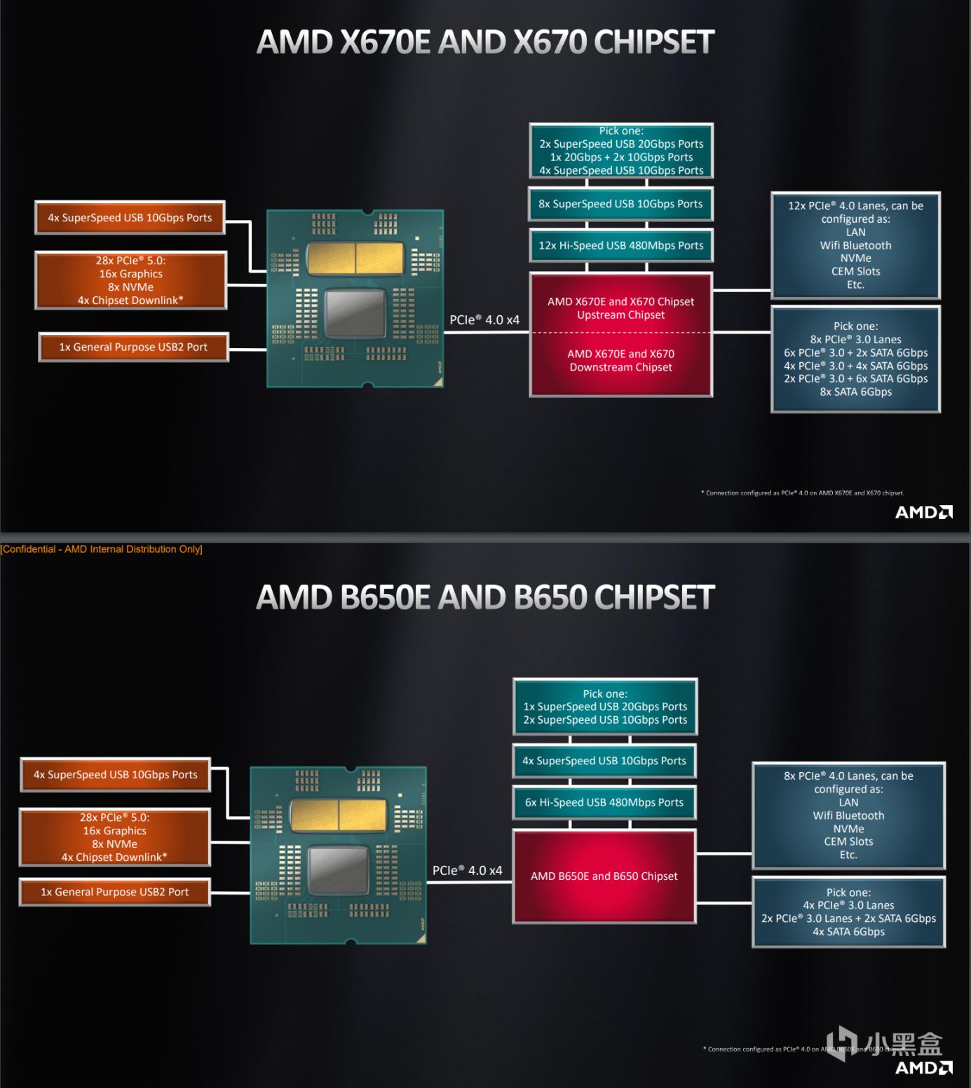 AM5平臺下的芯片組劃分更細,擁有X670、X670E、B650E和B650四種,主要區別在於PCH額外提供的PCIe 4.0通道和USB數量上,PCIe 5.0通道是由處理器提供的,如果想要體驗最新PCIe 5.0 SSD,這些板子都是能實現的,相較於顯卡的PCIe 5.0支持,顯然PCIe 5.0 M.2接口重要多了。