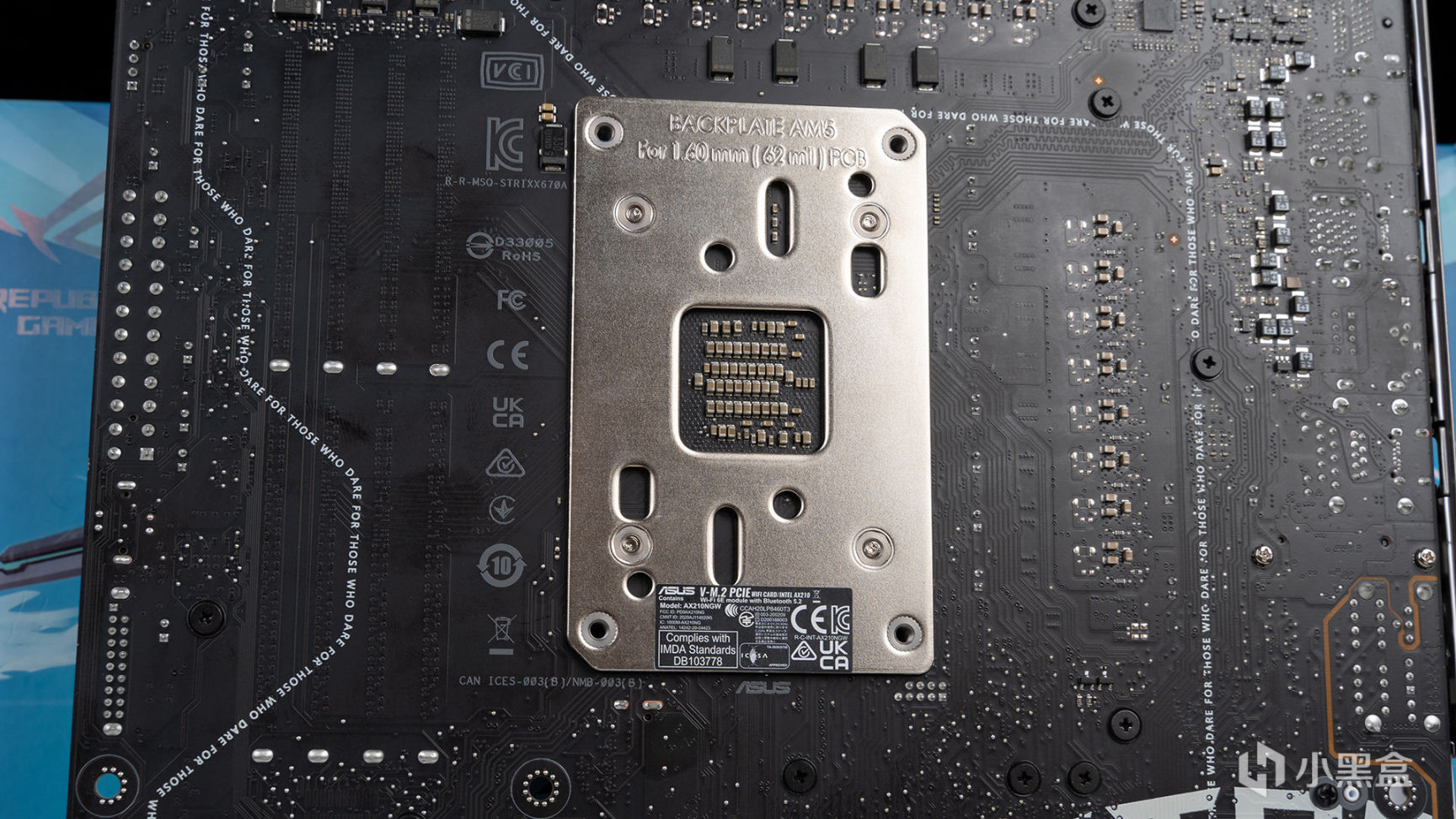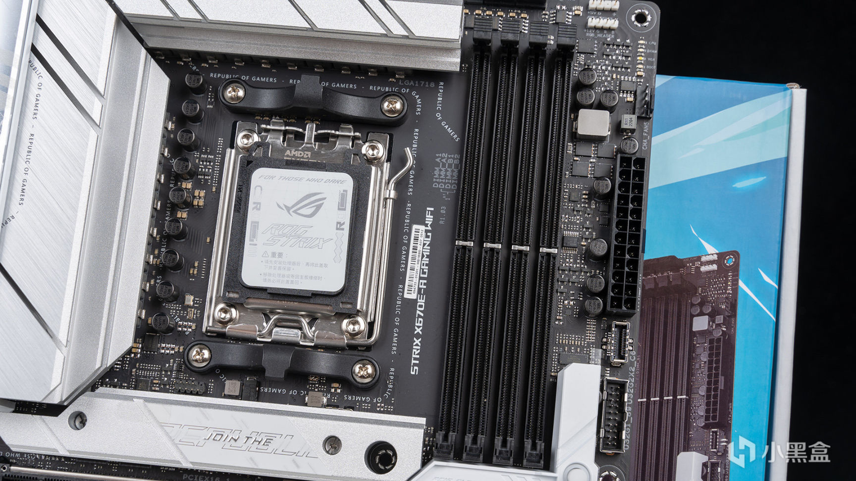 這次搭配測試的主板是華碩ROG STRIX X670E-A GAMING WIFI吹雪(簡稱ROG X670E吹雪),除了ROG B550吹雪以外,ROG X670E吹雪就是產品線下的第二款產品,同樣是ATX版型,第一眼最直觀的感受就是裝甲覆蓋面變大了,配色依然是銀白這兩種永恆搭配,供電模組升級到16+2,配備雙8pin CPU供電。