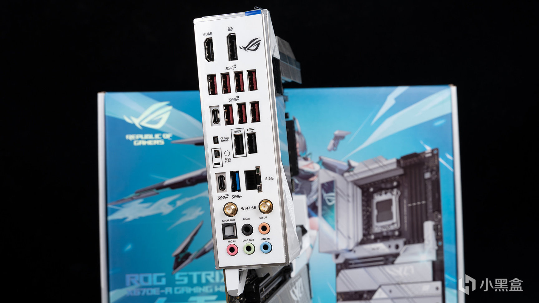 背部I/O接口一覽,USB接口數量是個大亮點,除了一組USB 3.2 GEN 2X2和一組USB 3.2 GEN 2 Type C以外,剩餘還有十組之多USB Type A接口可用,支持Wi-Fi 6E無線和2.5G有線網絡,DP 1.4和HDMI 2.1視頻輸出接口,擁有BIOS FLashBack和Clear CMOS按鈕,功能和接口都挺豐富的。