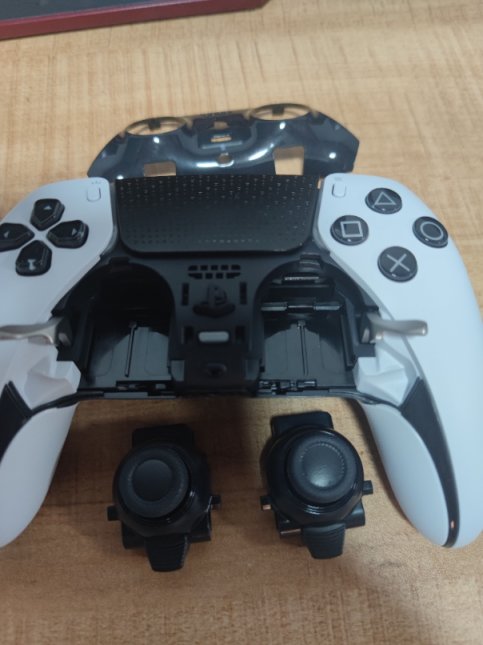 背键下边的RELEASE滑动后就可以把摇杆附近的盖子弹出,再把拨片打开就可以取出摇杆组件了,按回去也挺简单。可以从根本上解决摇杆漂移的问题,只不过一个单独的摇杆组件现在价格还是在130多仍然不便宜。