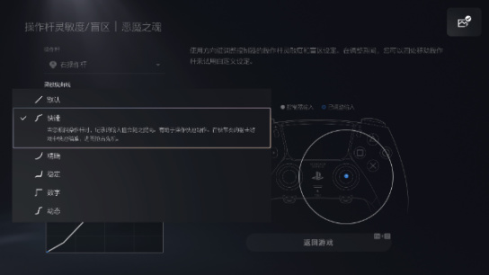 而对于摇杆的灵敏度,他预设了五个设定,可以覆盖动作、射击、快速射击、格斗的预设满足。当然也可以自定义设定