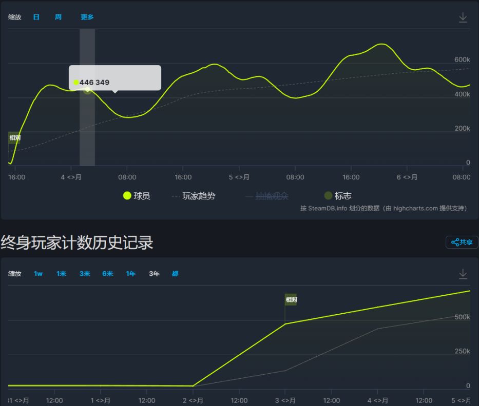 《博德之門3》最高71w人同時在線,歷史在線人數是第九位,僅次於《霍格沃茨之遺》,最近13小時峯值爲71w人,而且在線人數還有上漲的趨勢。