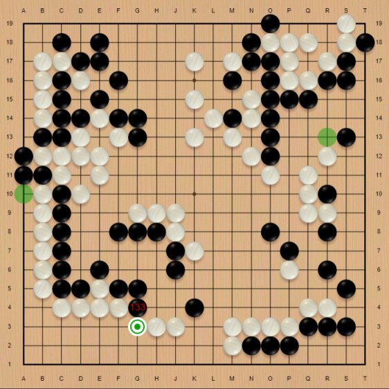 本場比賽再戰,申真諝執黑先行,雙方無愧於最像AI的棋手,第91手小申下出緩手,立刻就被李軒豪白棋嚴厲追究!