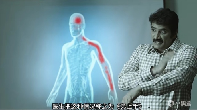 這部印度電影所講述的便是我上面提到的“更強人類”的一種具象表達,男主甚至平時需要封印住自己的左手(弟弟),以免其左手(弟弟)因爲“行俠仗義”而頻頻使自己陷入窘境,電影中有一個鏡頭挺耐人尋味的,男主雙拳同時向前推出,將壞人打趴,按上面的邏輯來講,還真是給人一種頗有“兄弟齊心,其利斷金”的既視感。