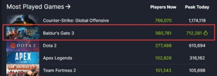 《博德之門3》作爲一個超高複雜度的回合制RPG,帶來了罕見的一幕,人氣衝到了第二,恐怖如斯。