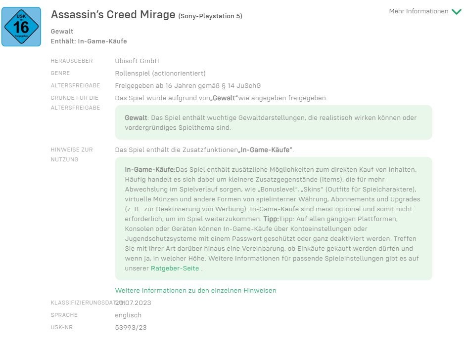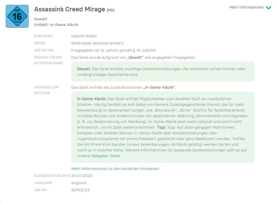 近日《刺客信条:幻景》在德国通过评级,被评为“16+”。评级信息显示,该作有大量的粗鄙语言,还有暴力行为。