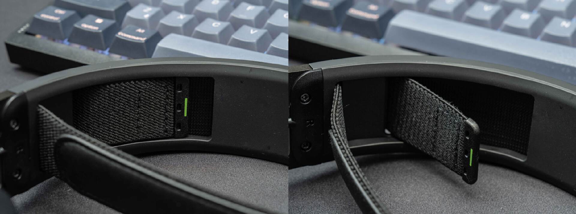 我最喜欢HS80 RGB的头梁伸缩设计,通过魔术贴调节弹性带的长度,从而适配头部,这样的优势是不需要每次都调节耳罩,而且弹性带有一定的缓冲,头顶佩戴更舒服。