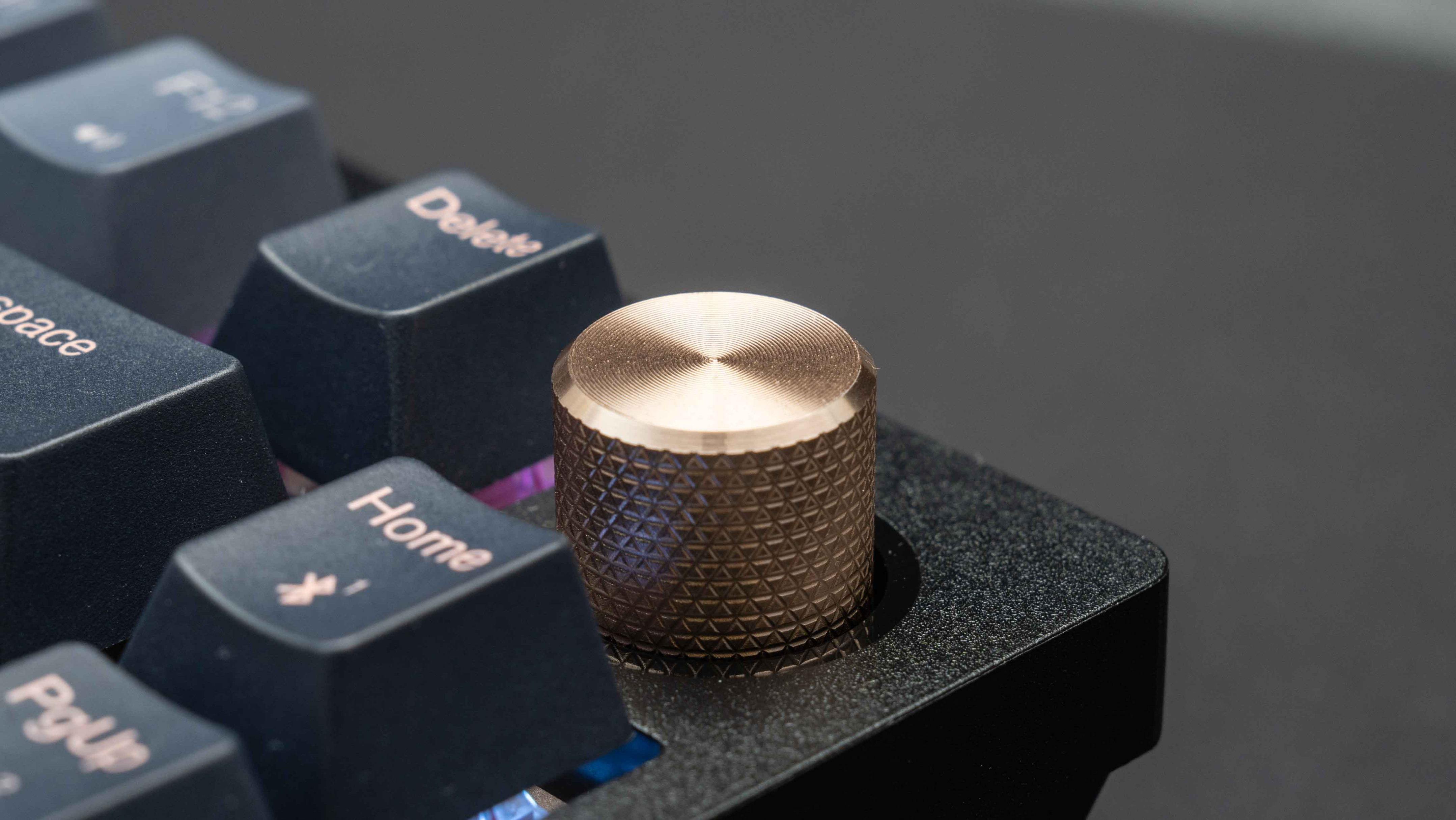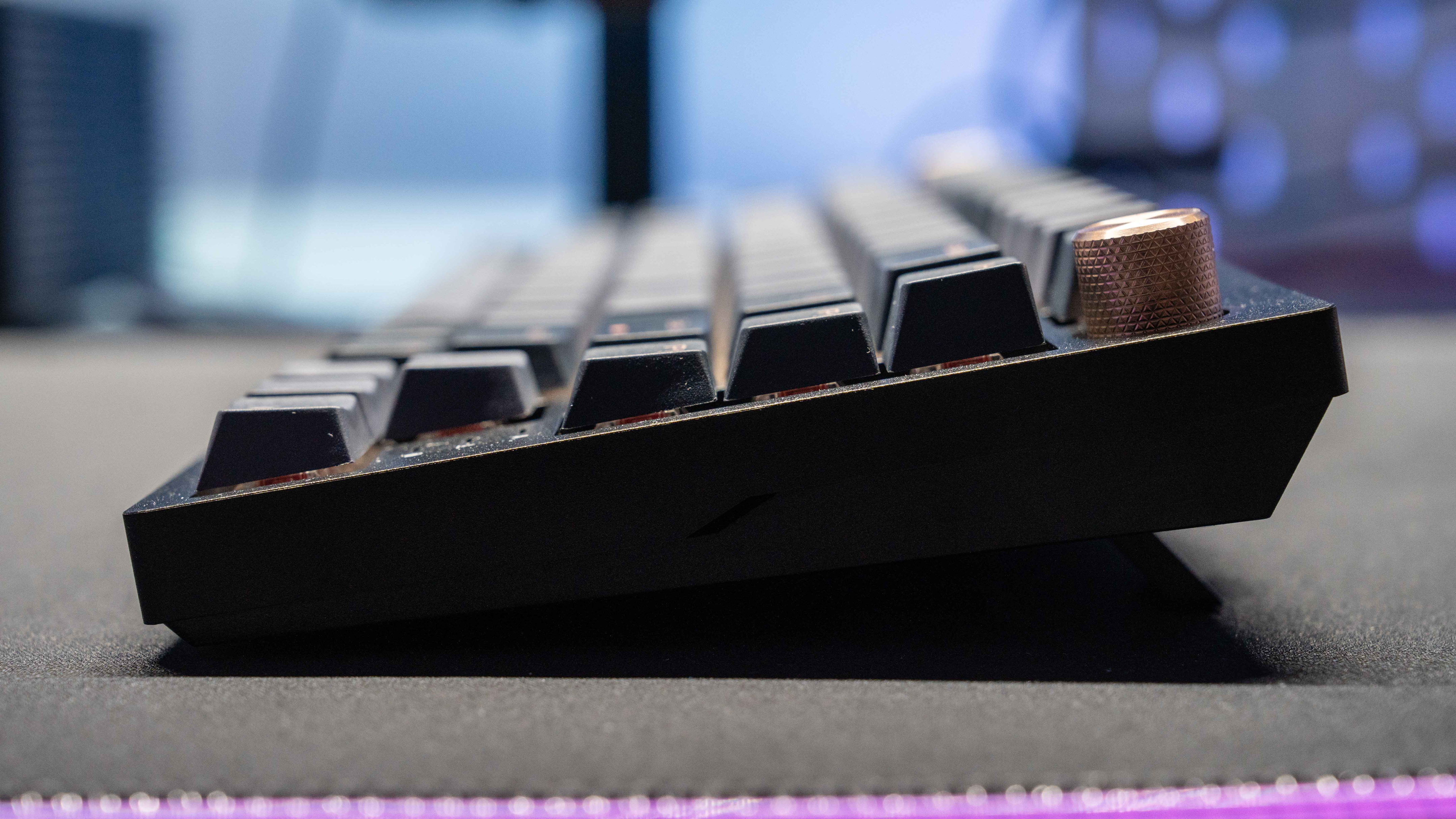 还有键盘上的旋钮,其实旋钮对于海盗船是传统艺能了,贼船早早就把多媒体键玩明白了,旋钮也不足为奇,给个特写看看贼船的旋钮细节,做工真的不错,FN加F区能完成多媒体功能的控制,不占地方。