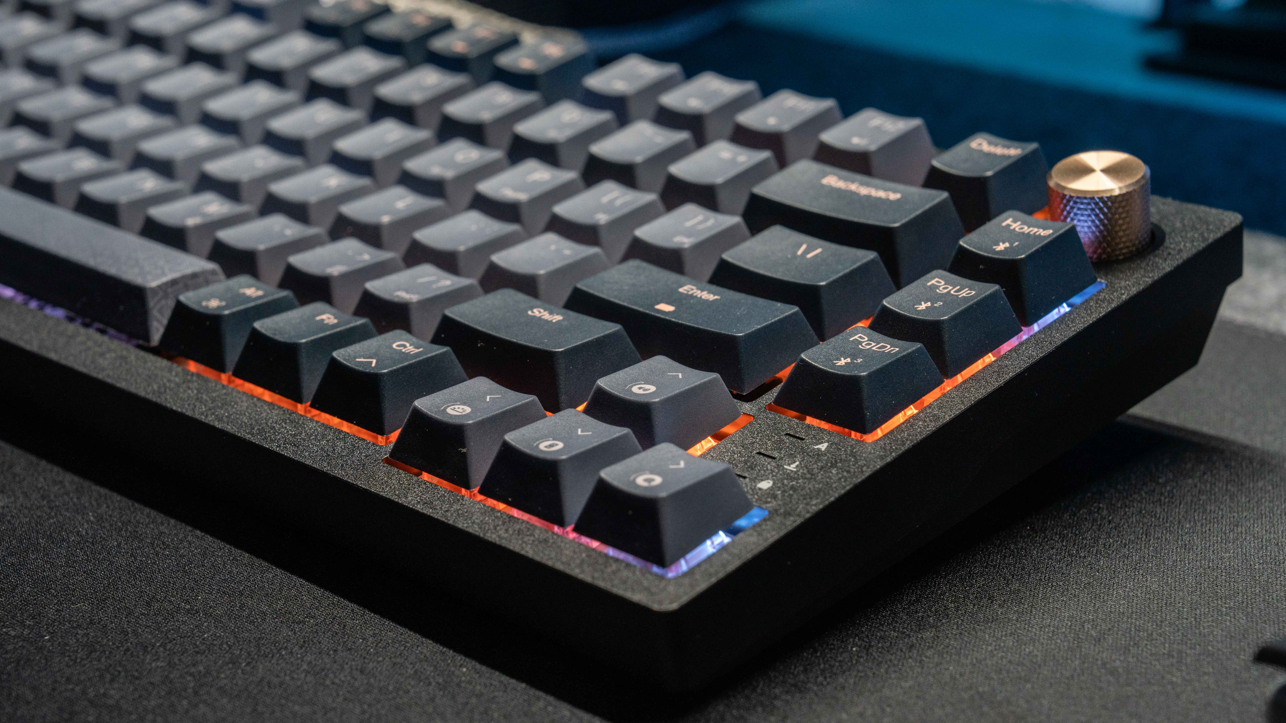 75%的配列用过都懂,没有104小键盘的小键盘,节约位置,又比87更窄,将方向键和编辑键精简靠在主键盘旁边,同时与主键盘有距离隔开,75%应该是立马可以上手适应,无需习惯的配列了。