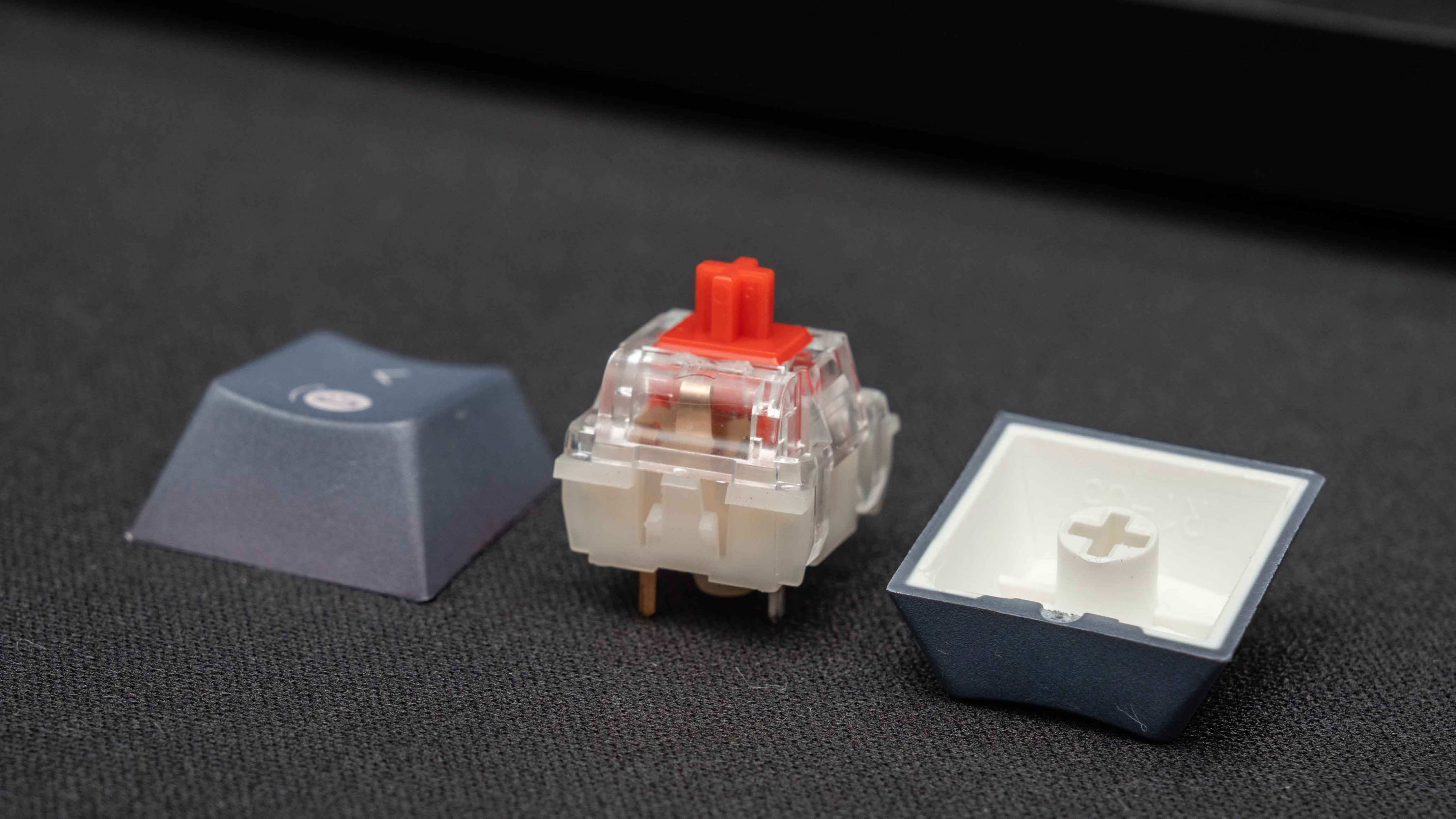 K65 PLUS这次采用了贼船自家LOGO的红轴,不知道和他家光轴是不是一家代工的,手感还不错,有预润轴的手感,45g的压力,1.9mm的键程,比樱桃红更舒服。