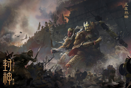 随着《封神第一部》票房突破16亿人民币,影片第二部上映的希望变大,片方近日曝光两张新的《封神第二部》概念图,分别是变身后的殷郊和四大天王大战人类。此外,片方也在社交媒体公布了一批《封神第一部》工作照。