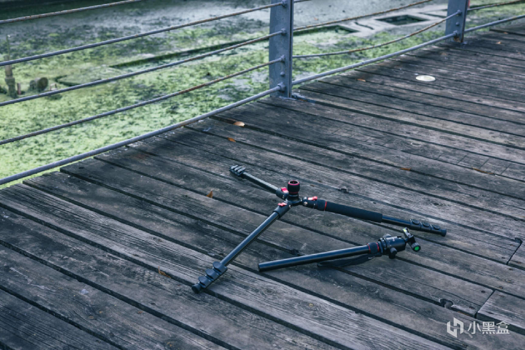 探花目前使用的是斯莫格CT-20铝合金三脚架,整体承重15KG,支持180°反折收纳,收纳后的长度在44cm左右,日常出行携带较为方便。这款三脚架高度变化依靠脚管上扳扣调节,相较于常见的螺旋式调节结构,一扳一扣的扳扣式设计收放脚管要更加快捷高效。