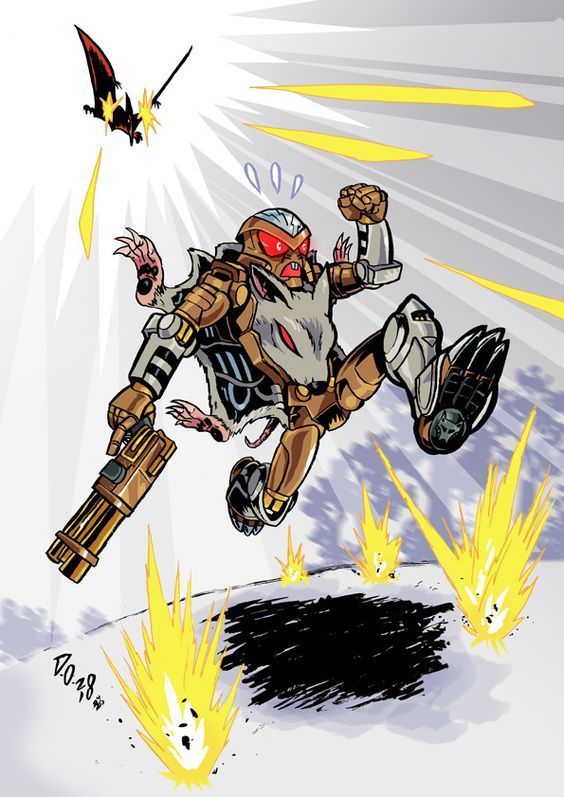 老鼠勇士是巨無霸中的搞笑擔當,有它在總會爲大家帶來快樂。插畫中的它在躲避原始獸的攻擊,看起來很有意思。