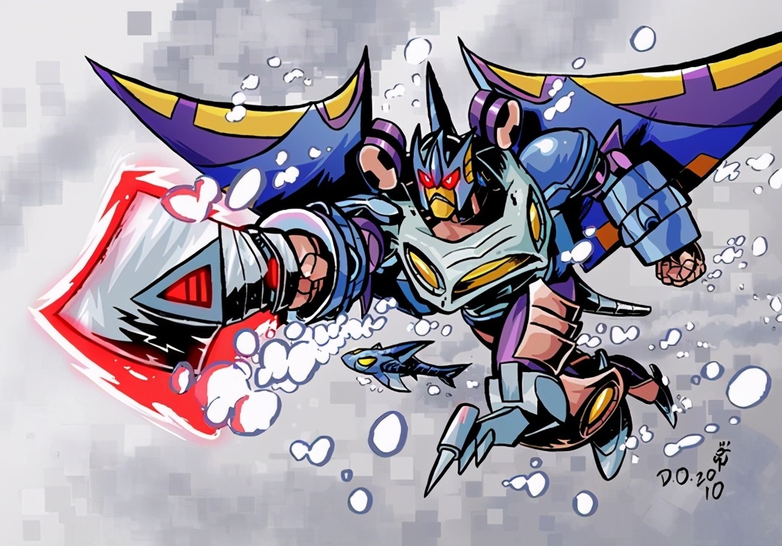 最後是急先鋒,比較有個性的角色,早期不聽從猩猩隊長的命令,後期融入了機體成爲了出色的戰士,插畫中的它看起來色彩鮮豔。看了以上模友繪製的變形金剛超能勇士巨無霸成員,大家最喜歡其中的哪張呢?