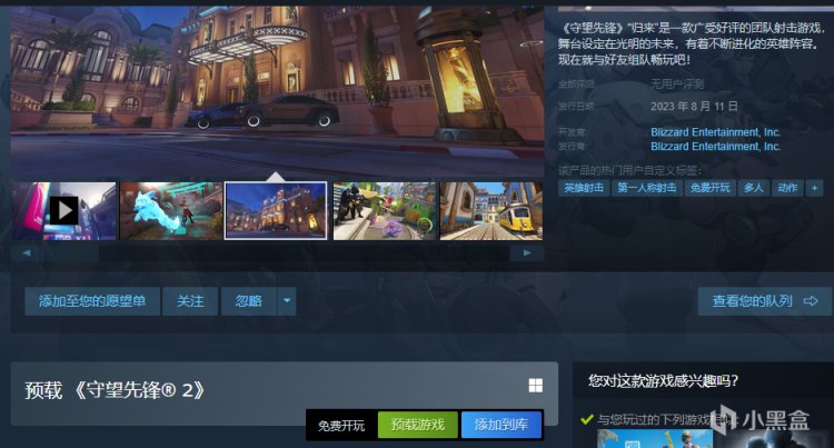 《守望先鋒2》steam頁面今日開啓預載,本體免費可直接入庫下載,支持簡體中文,硬盤需要50gb空間。