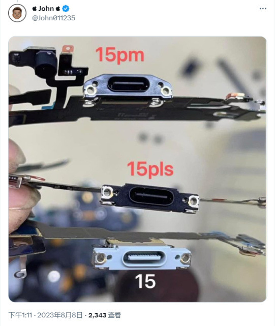 关于iPhone转向USB-C的传闻已经有一段时间了,但Apple可能还会继续使用Lightning接口一年。然而,根据最新泄露的图片,Apple已经全面投入到iPhone 15和iPhone 15 Pro型号的USB-C中。X用户在泄露的图片中展示了iPhone 15、iPhone 15 Plus和iPhone 15 Pro Max的所有USB-C部件。这个账户在Apple泄露记录中并不多见,但最近他们开始发布iPhone 15部件和组装过程的照片和视频。