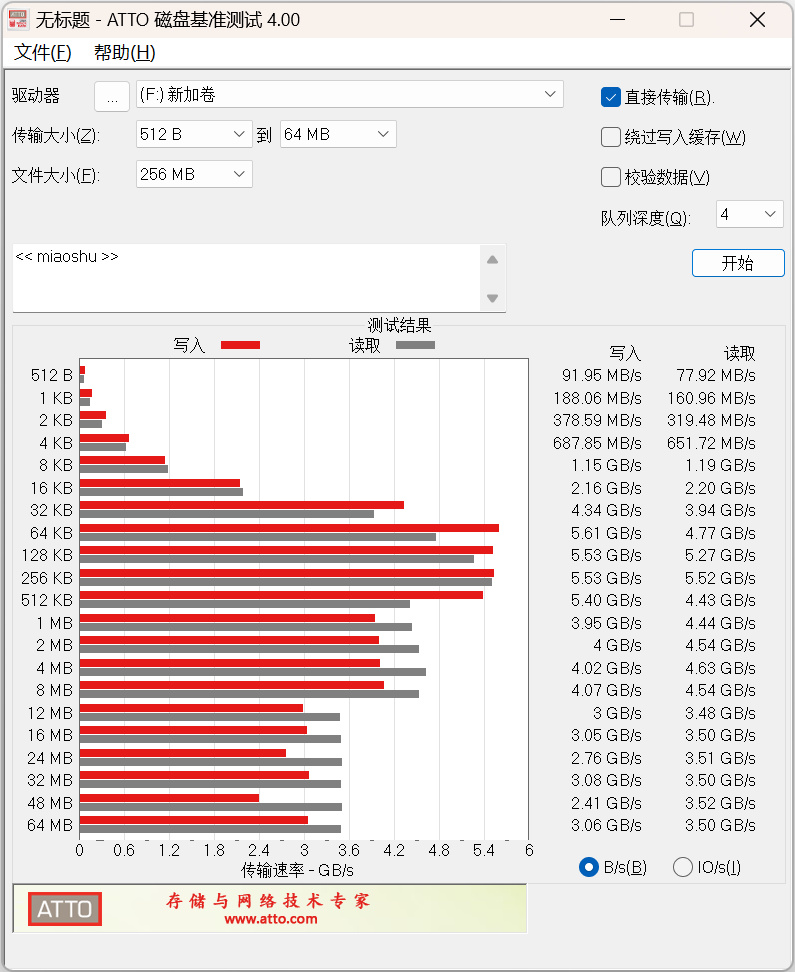 ATTO磁盤基準測試爲512B、1K、2K直到64MB的小文件進行讀寫測試,移速黑豹的表現同樣優異。