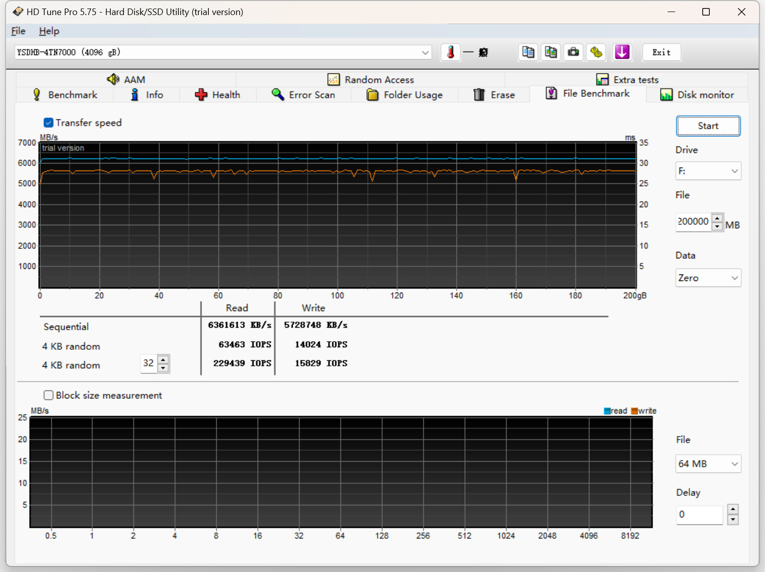 HD Tune是一款可以檢測傳輸速率、硬盤健康狀態、實時溫度、磁盤表面掃描等項目的綜合性硬盤測試軟件,也可以測試固態硬盤的緩外速度。移速黑豹的傳輸速度表現穩健,在200G大文件讀寫測試中只有輕微波動,沒有出現明顯掉速現象