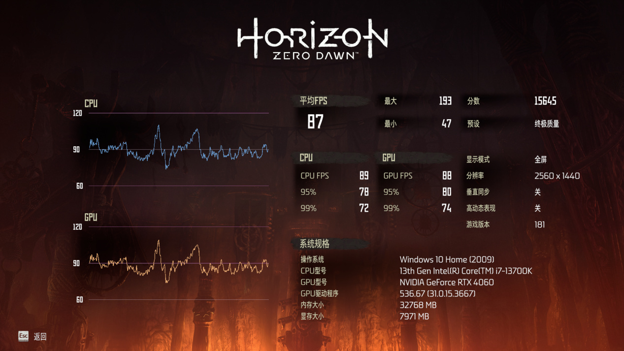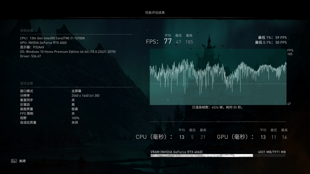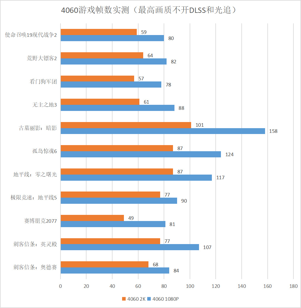 1080P预设最高画质平均80帧,2K预设最高画质平均59帧