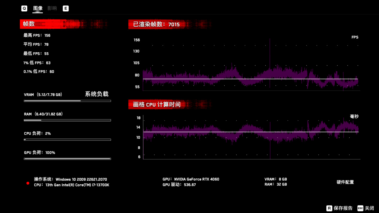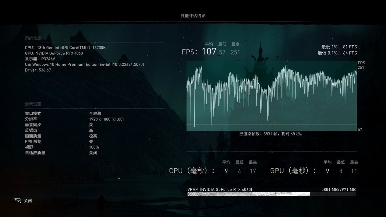 1080P预设最高画质平均107帧,2K预设最高画质平均77帧